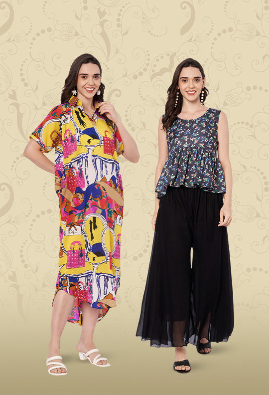 Kuberakshi Abstract Print Shirt Kurti with Palazzo Set