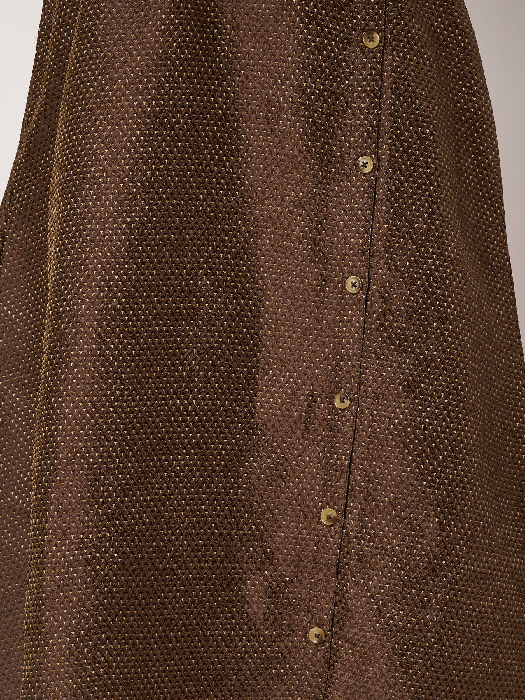 Elevate your wardrobe with this sophisticated brown side cut long dress from Kuberakshi. The strategic side cutout design adds contemporary flair while maintaining an elegant silhouette, making it ideal for both casual outings and semi-formal occasions. Crafted with attention to detail, this piece combines timeless brown tones with modern styling for a versatile look that transitions seamlessly from day to evening wear. Perfect for those seeking refined fashion with an edge.