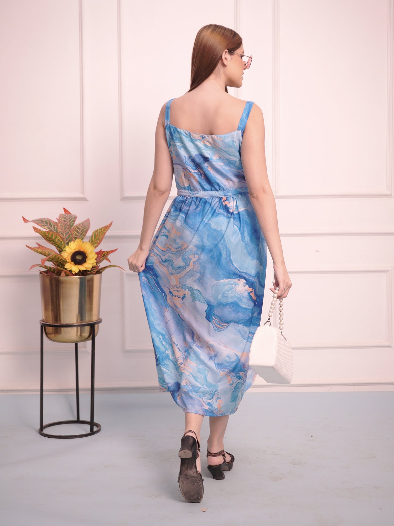 Step into effortless elegance with our Ocean Breeze Marble Print Sleeveless Jumpsuit. Designed with a stunning swirl of blues, peaches, and soft whites, this jumpsuit features a marble-inspired print that captures the essence of ocean waves and summer skies. The sleeveless cut, round neckline, and relaxed fit offer ultimate comfort, while the adjustable waist tie enhances your silhouette for a flattering finish. Crafted from lightweight, breathable fabric, it's perfect for brunch dates, beachside strolls, or casual evenings out.