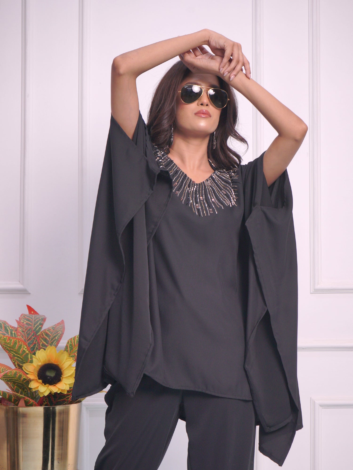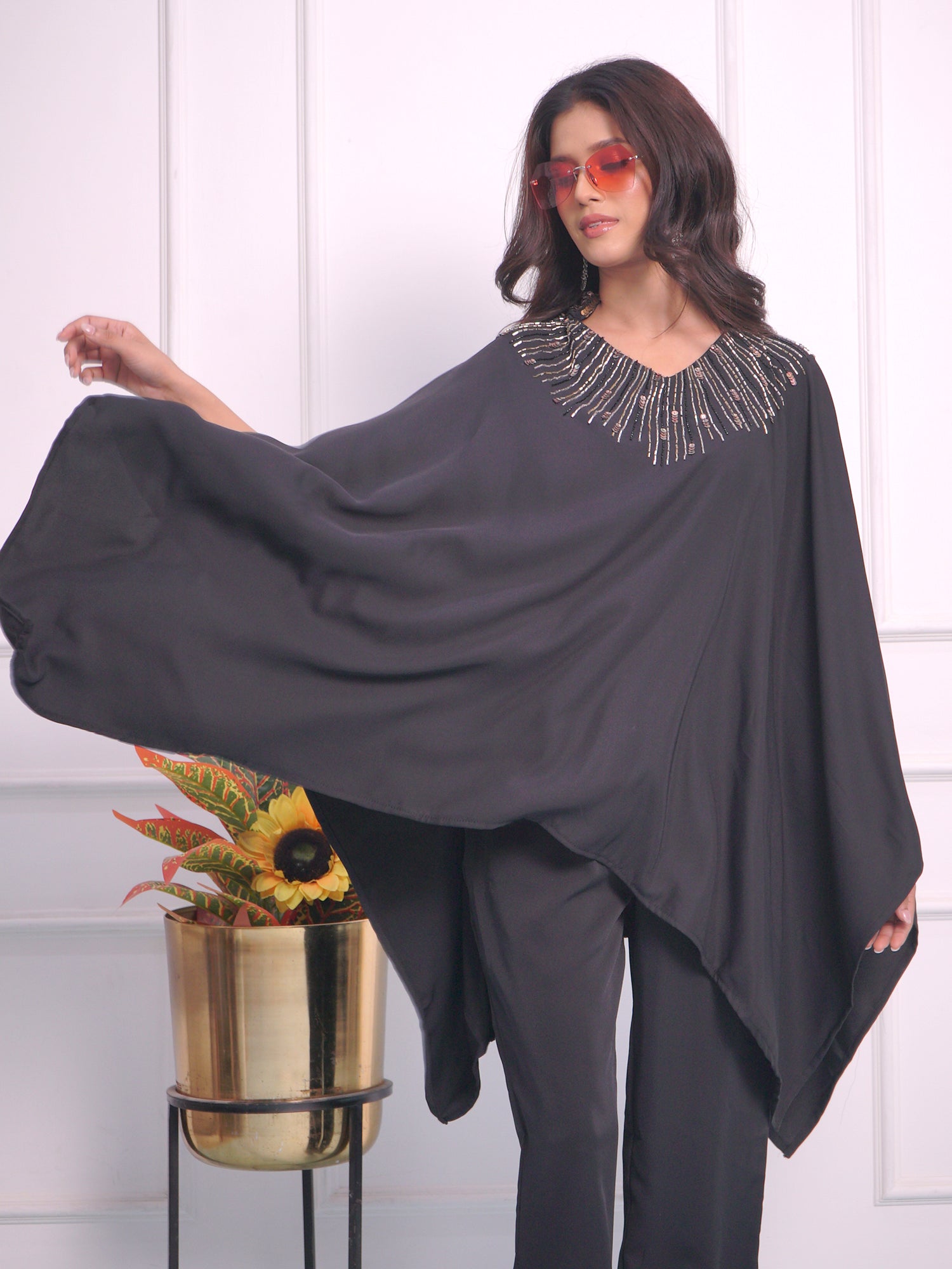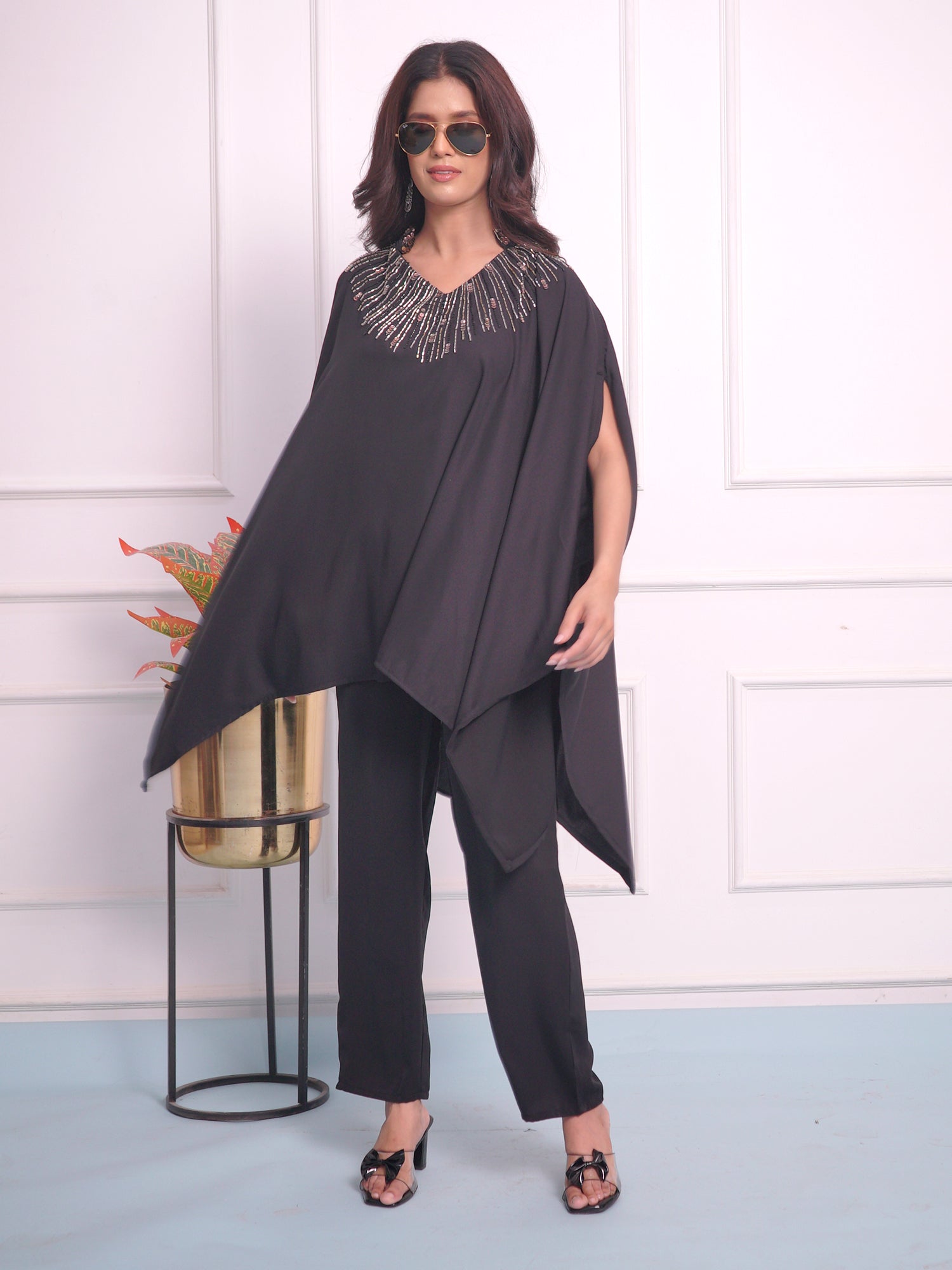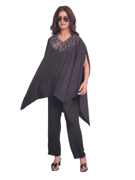 Crafted with high-quality pure satin crape fabric, this party cord set is the perfect outfit for every woman. Its versatile free size design ensures a perfect fit for all body types. Elevate your style and stand out in any occasion with this elegant and comfortable ensemble.